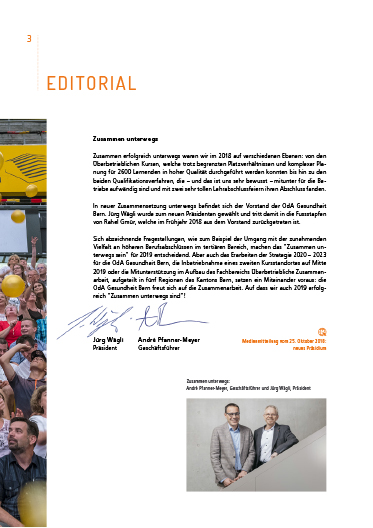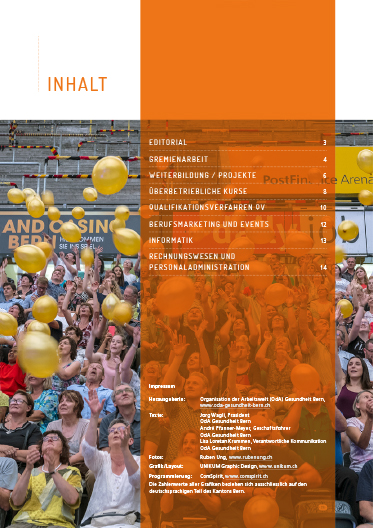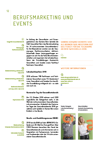 Gestaltungskonzept für den elektronischen Jahresbericht 2018 sowie 2019 der Organisation der Arbeitswelt (OdA) Gesundheit Bern.